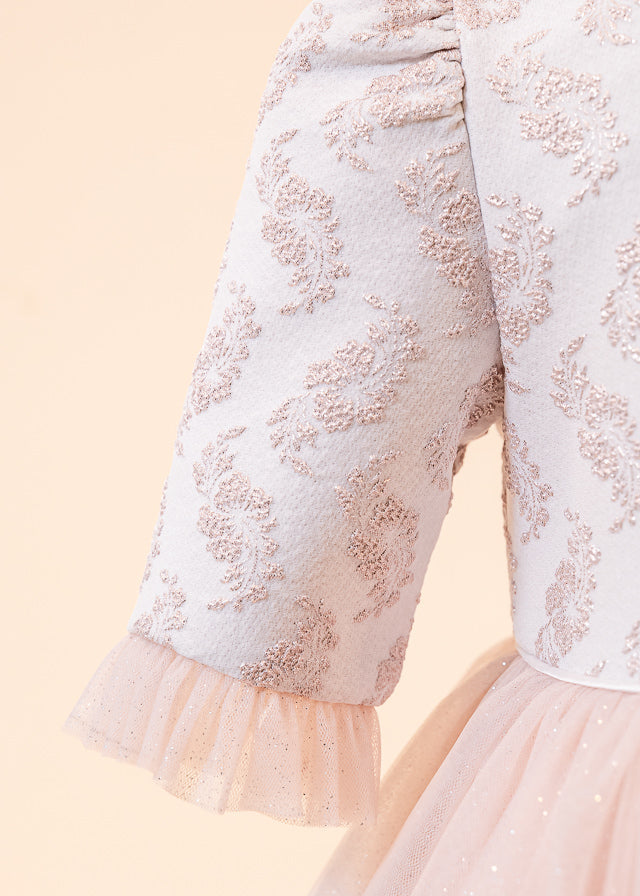 Oferă-i micuței tale un look fermecător cu Setul Melania - Rochiță cu Pardesiu Brocard Roz AnneBebe. Perfect pentru botez sau alte evenimente elegante, acest set va transforma fiecare moment într-o amintire de neuitat.