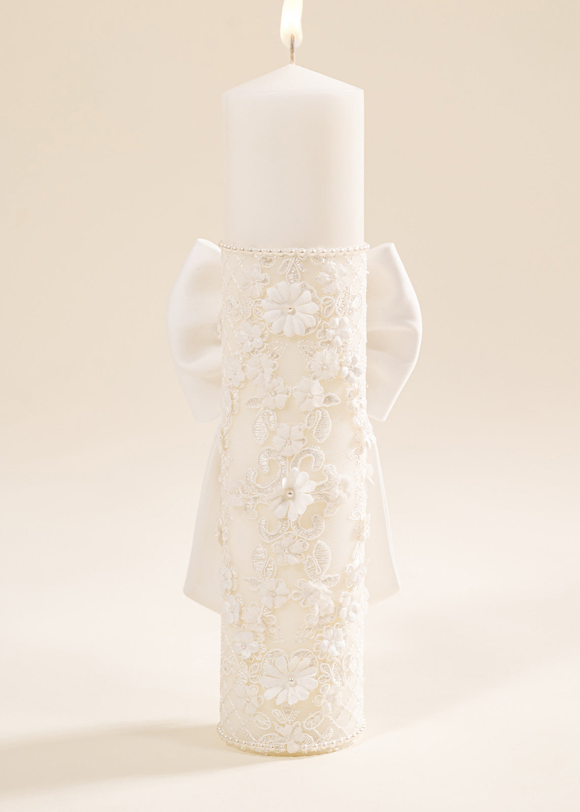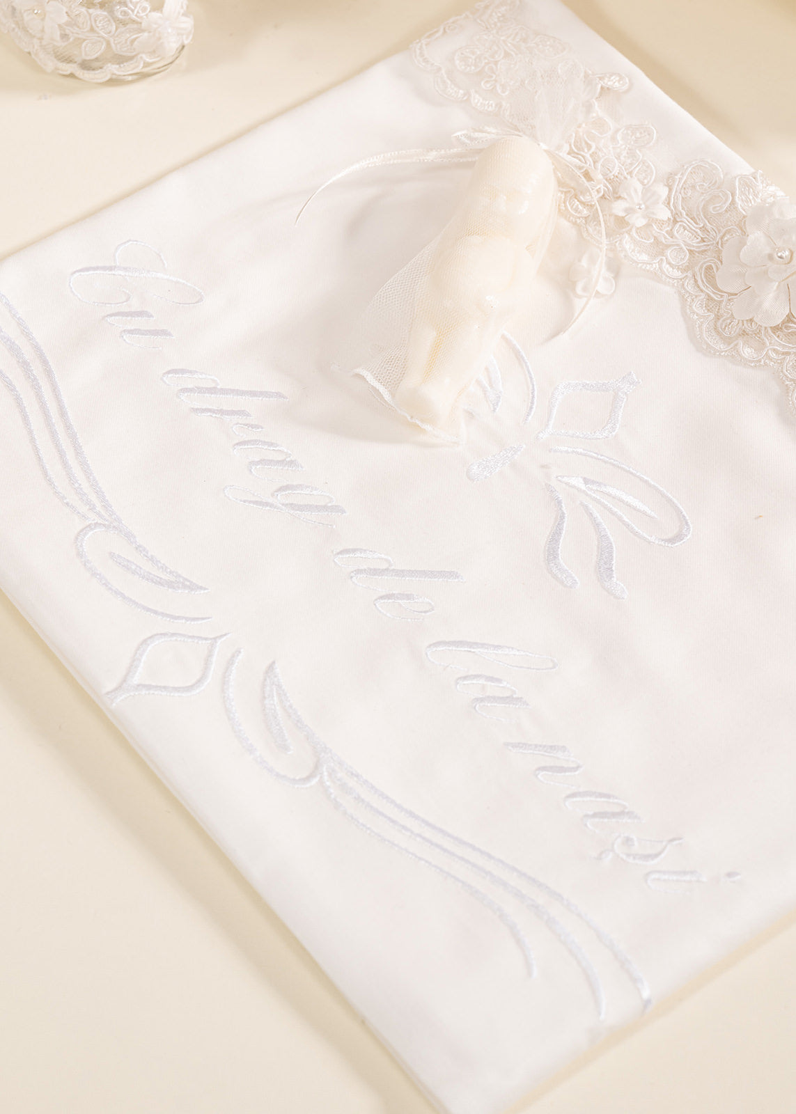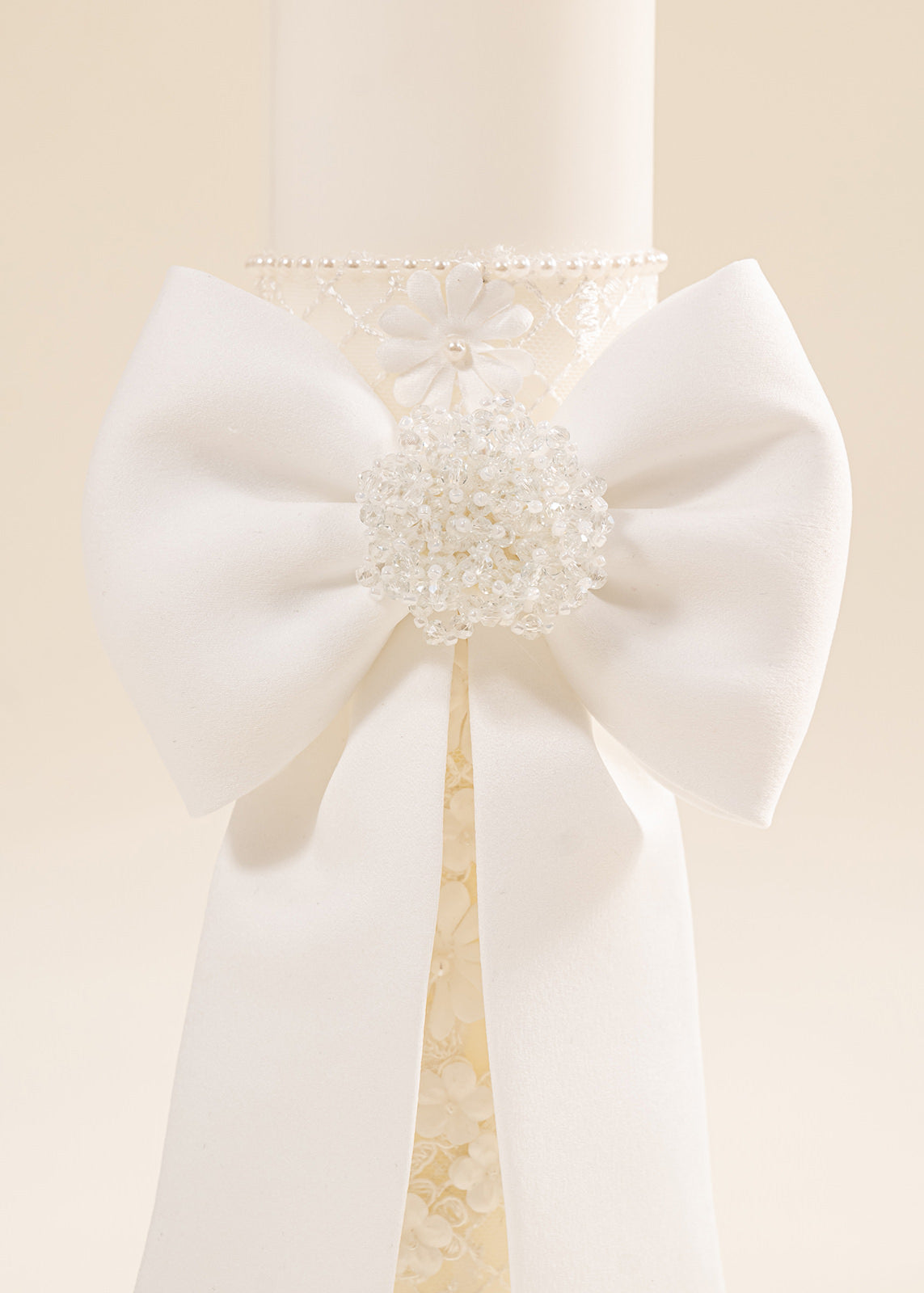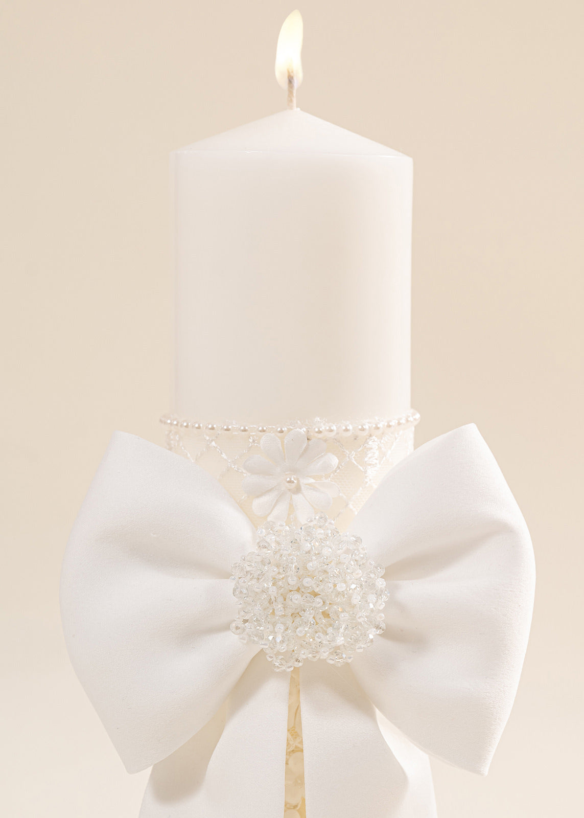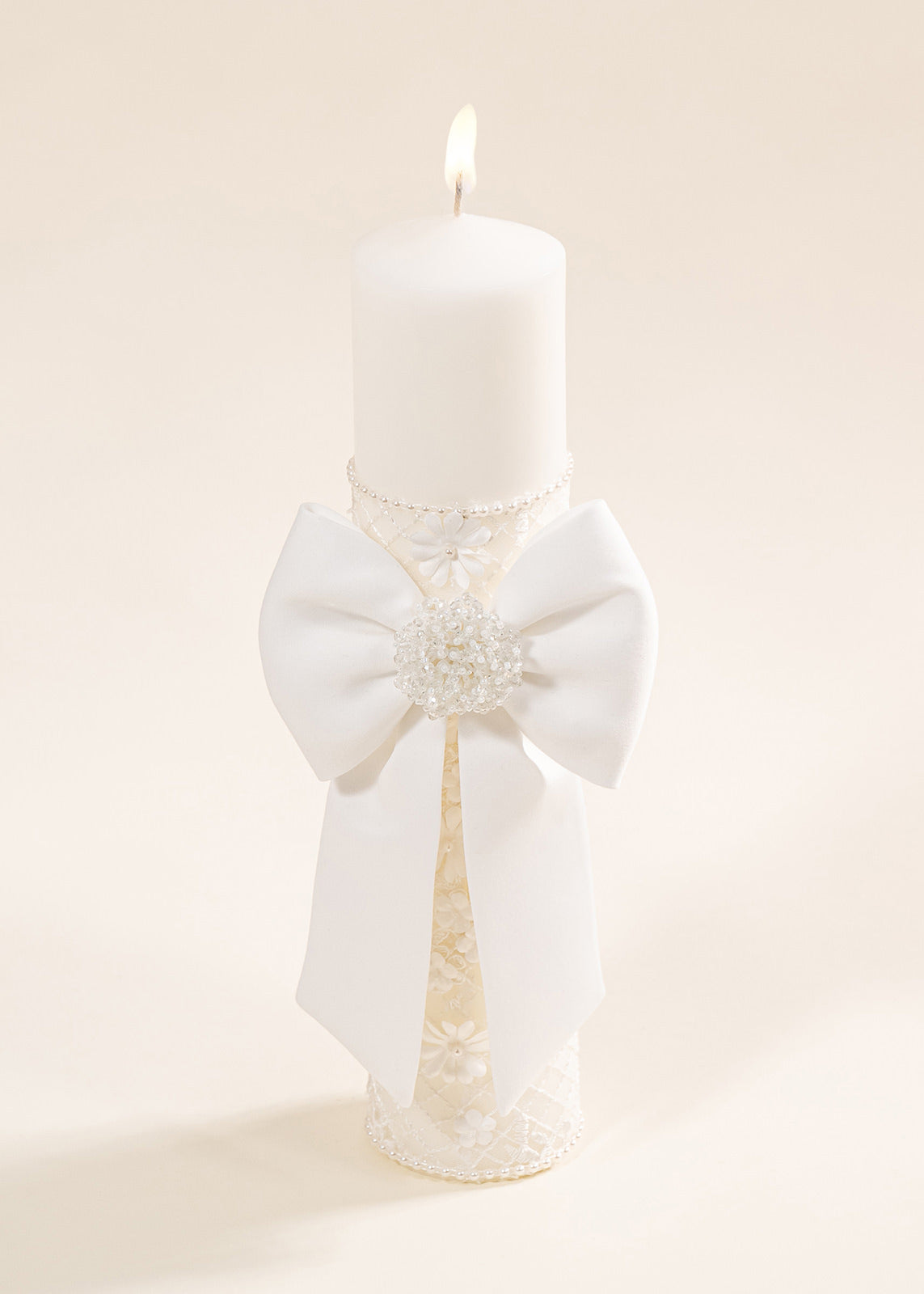 Lumânarea de botez joacă un rol profund spiritual, simbolizând lumina care va călăuzi pașii micuței în viață. În cadrul ceremoniei, aprinderea lumânării de către nași reprezintă angajamentul lor de a o însoți cu grijă și iubire în drumul ei. Floriile mari, în relief, sunt o metaforă a purității și frumuseții sufletului copilului, iar nuanța caldă crem evocă inocența și liniștea începuturilor. Această lumânare nu doar luminează momentul botezului, ci rămâne și o amintire vie a promisiunii făcute.