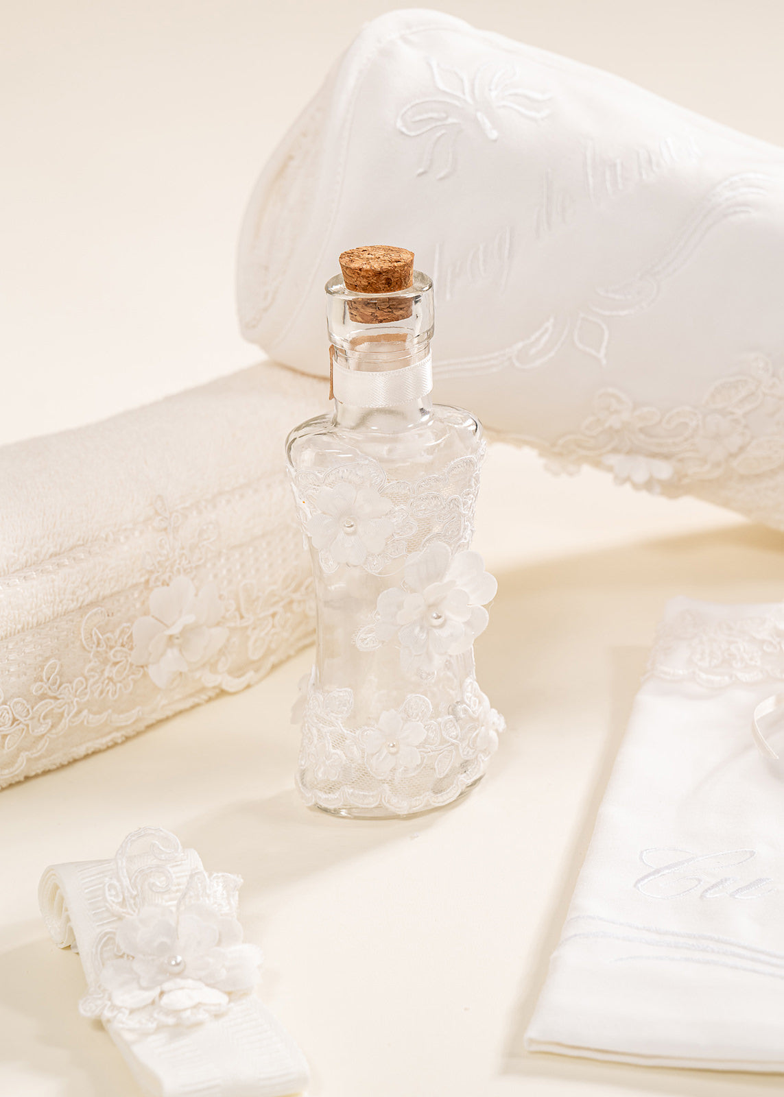 - Sticluță pentru mir cu dop: Un accesoriu indispensabil, livrat fără conținut, perfect pentru a fi umplut cu mir sfințit în ziua ceremoniei.