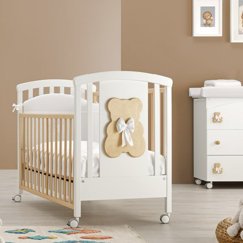 Descoperă patutul Dudu de la Erbesi, o piesă centrală în orice cameră de bebeluș, care îmbină armonios estetica naturală cu funcționalitatea de top. Fabricat meticulos din lemn de fag solid, acest patut impresionează prin durabilitatea și rezistența sa, fiind finisat într-o paletă de culori calde, alb și natural, ce aduce un suflu de prospețime și lumină în spațiul destinat odihnei bebelușului. Fiecare detaliu este gândit pentru a asigura un mediu sigur și confortabil: de la vopseaua ecologică, pe bază de apă, până la colțurile blând rotunjite care previn orice risc de accidentare.