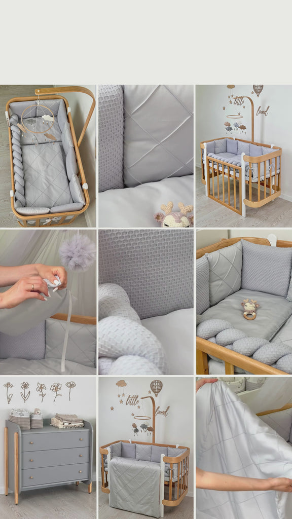 Discover a corner of peace, refinement and protection for your baby! 🤍 This light gray platinum bedding set brings a modern and calm air to any children's room, being ideal for parents who love neutral, elegant and unisex tones . Perfect for both boys and girls! 👶✨