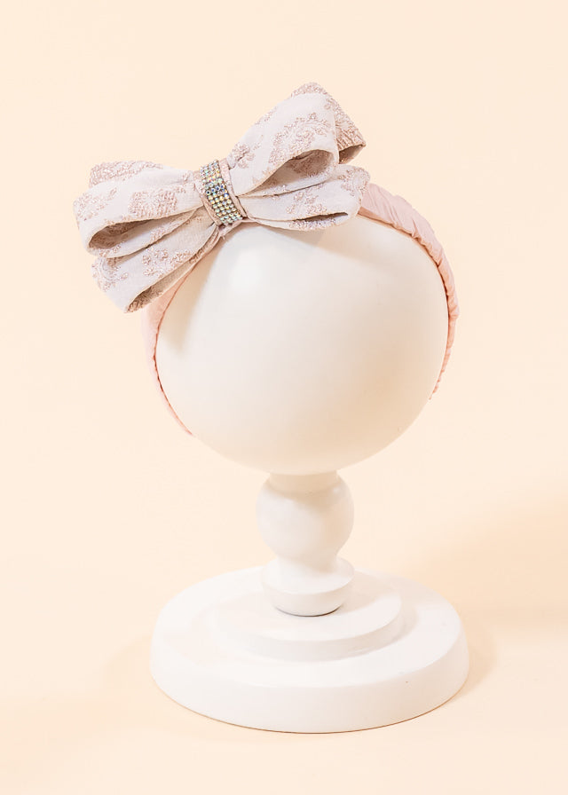 • Material elegant: Realizată din brocard roz, bentita are un aspect sofisticat și delicat.