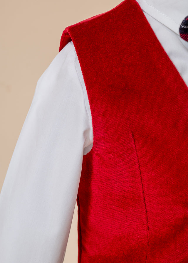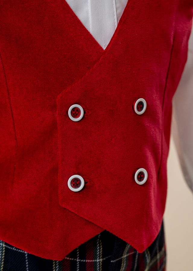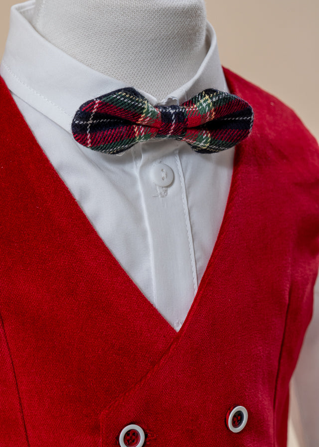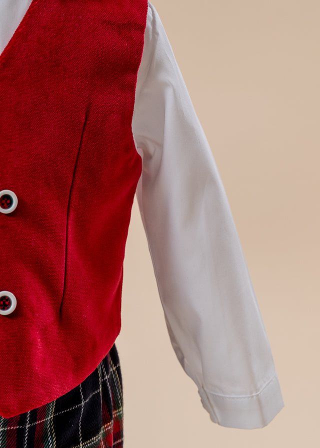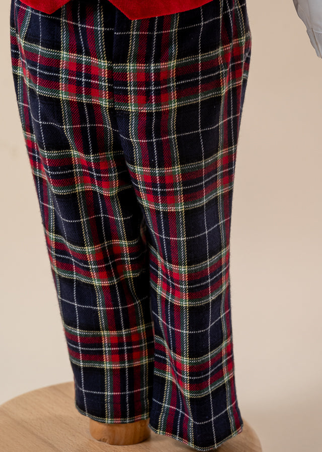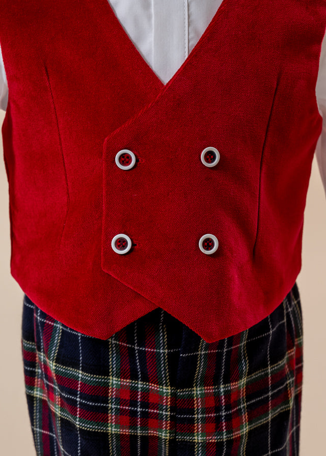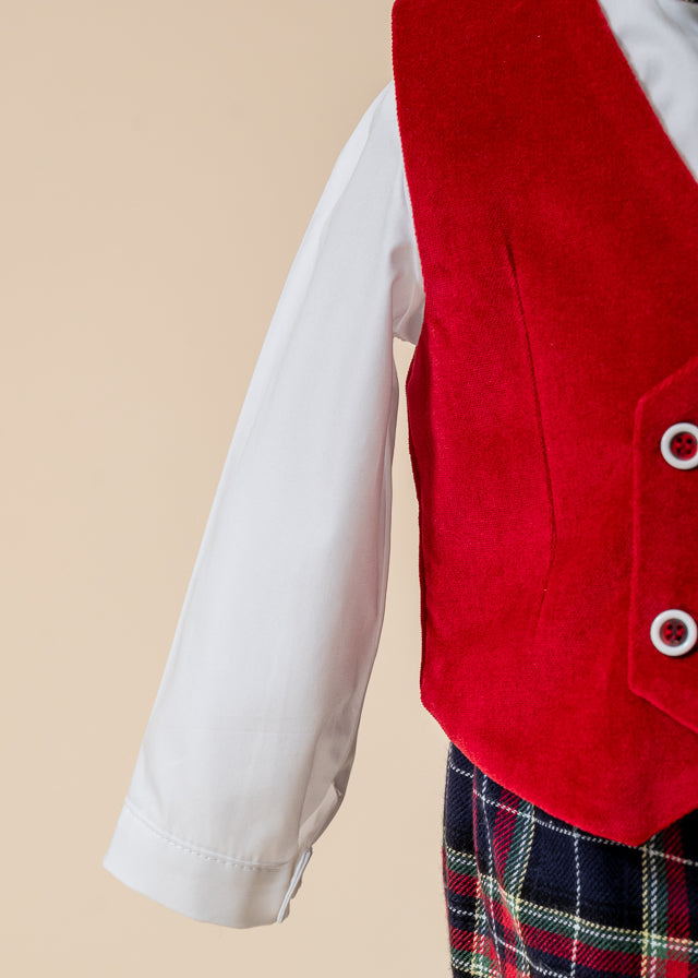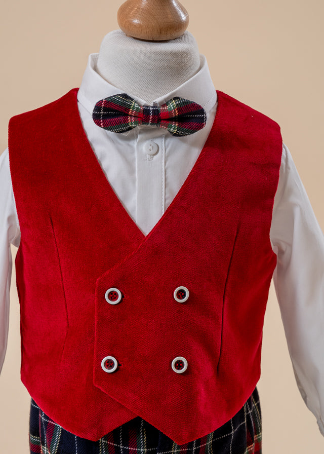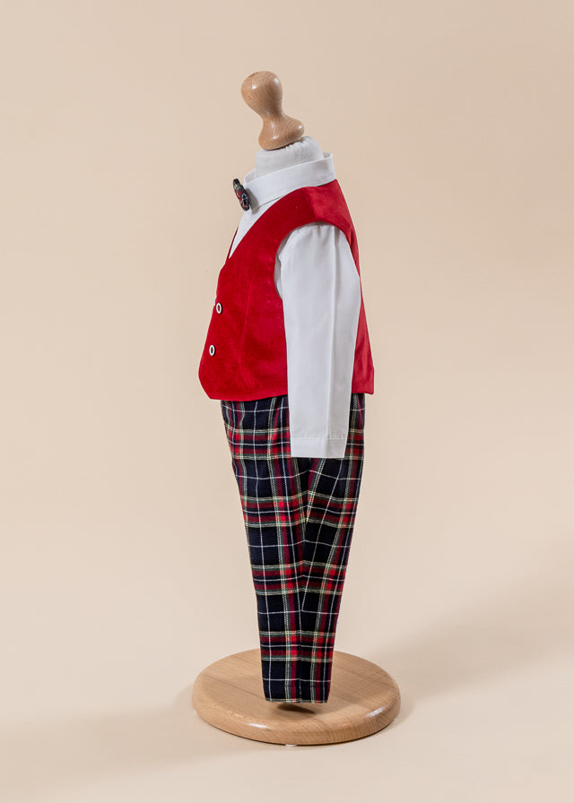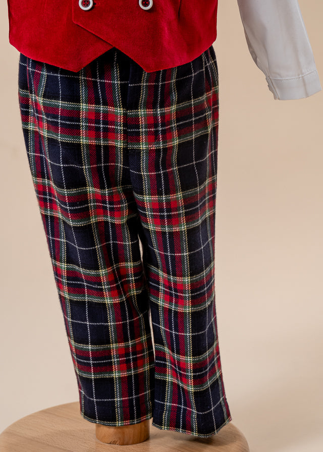 Costum Vesta Catifea Rosie Si Pantalon Carouri AnneBebe