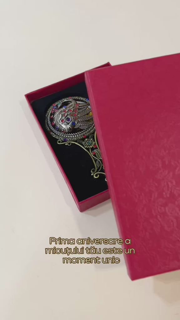 Fie că pregătiți ceremonia tăierii moțului sau turtei pentru băiețelul sau fetița dumneavoastră, o foarfecuță de calitate, cu un design vintage, este alegerea perfectă. Această foarfecuță nu este doar un accesoriu estetic, ci și un instrument precis și sigur, realizat special pentru momentele importante din viața micuților. Datorită oțelului carbon hipoalergenic, fiecare tăiere este fină și delicată, fără riscul de iritații sau disconfort.