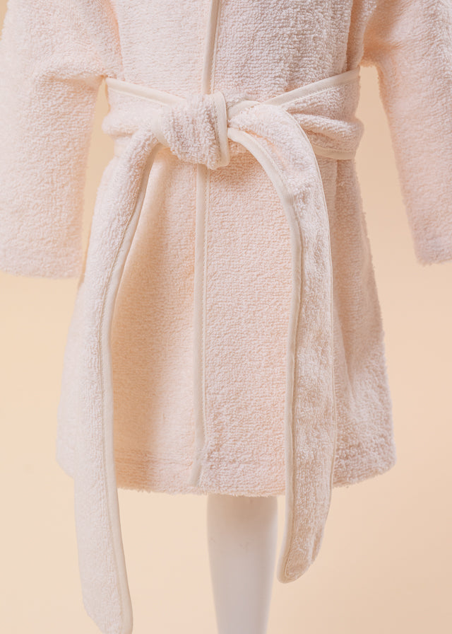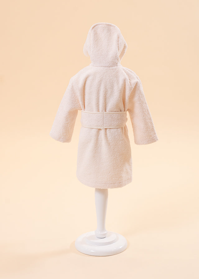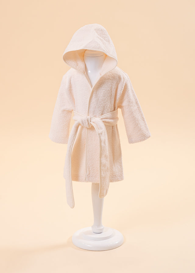 Halat De Baie Bebelusi Bumbac Cu Gluga Si Cordon Crem Inchis AnneBebe