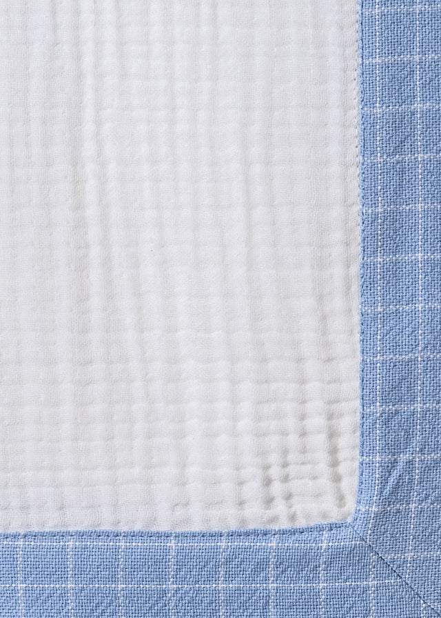 Pled Bebelusi Baieti Muselina Crem Cu Bleu Patratele AnneBebe
