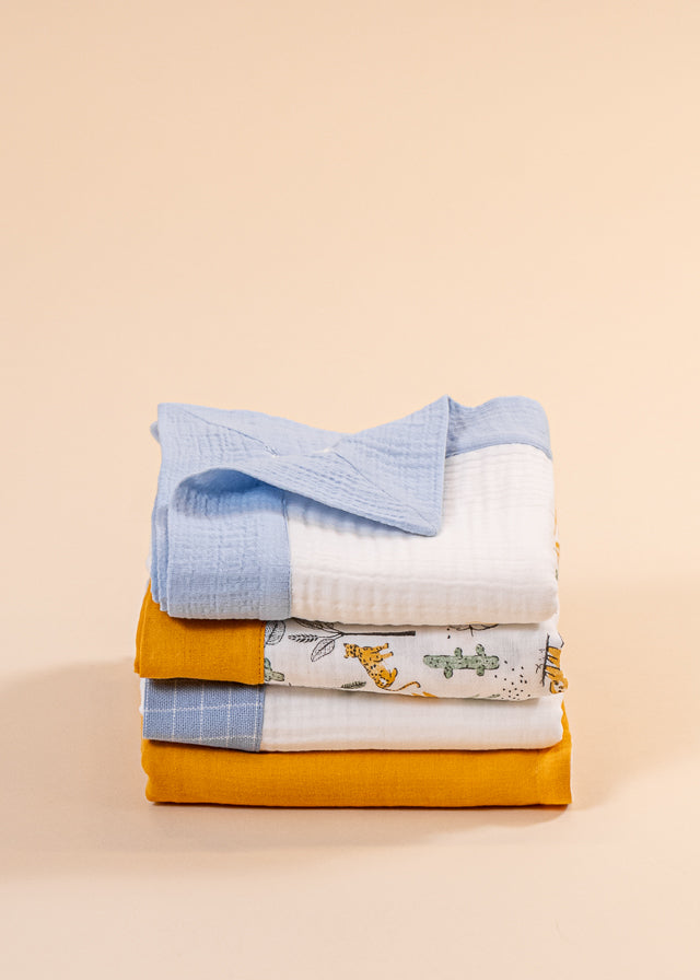 Pledul Bebeluși Băieți Mușelină Crem cu Bleu Pătrățele AnneBebe este alegerea perfectă pentru a asigura confortul și căldura micuțului dumneavoastră. Alegeți acest pled pentru a adăuga un plus de delicatețe și rafinament experienței bebelușului dumneavoastră.