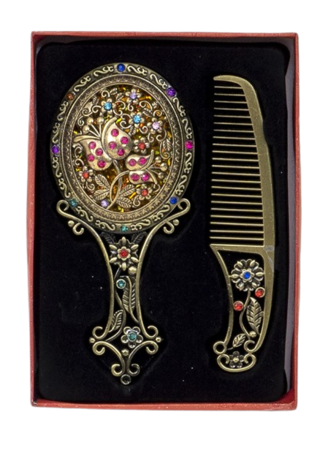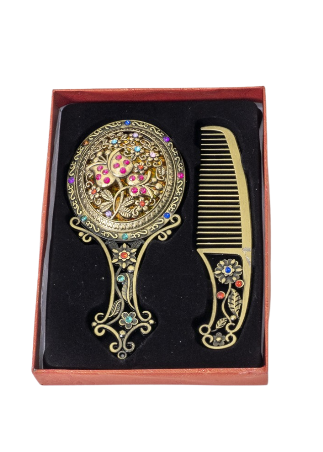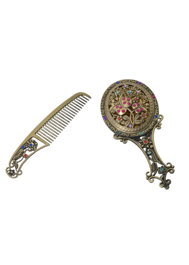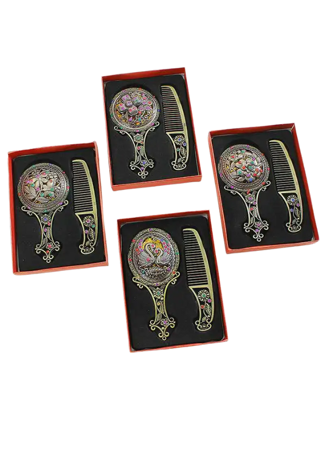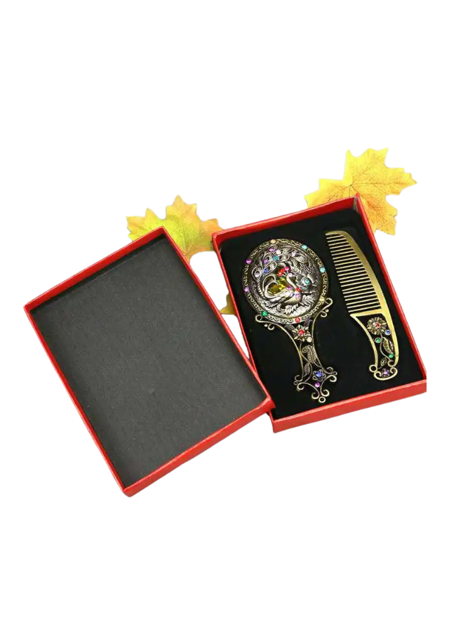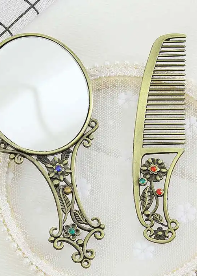 ✨ Utilizare versatilă – Pe lângă semnificația tradițională, pieptănul poate fi folosit pentru coafarea părului delicat al copiilor, iar oglinda devine un accesoriu elegant.