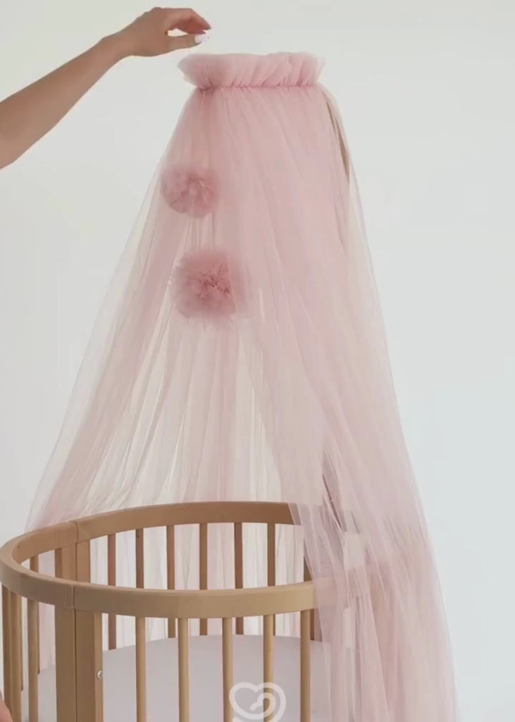 - Somn liniștit – Baldachinul montat filtrează lumina și creează un ambient calm și relaxant.
